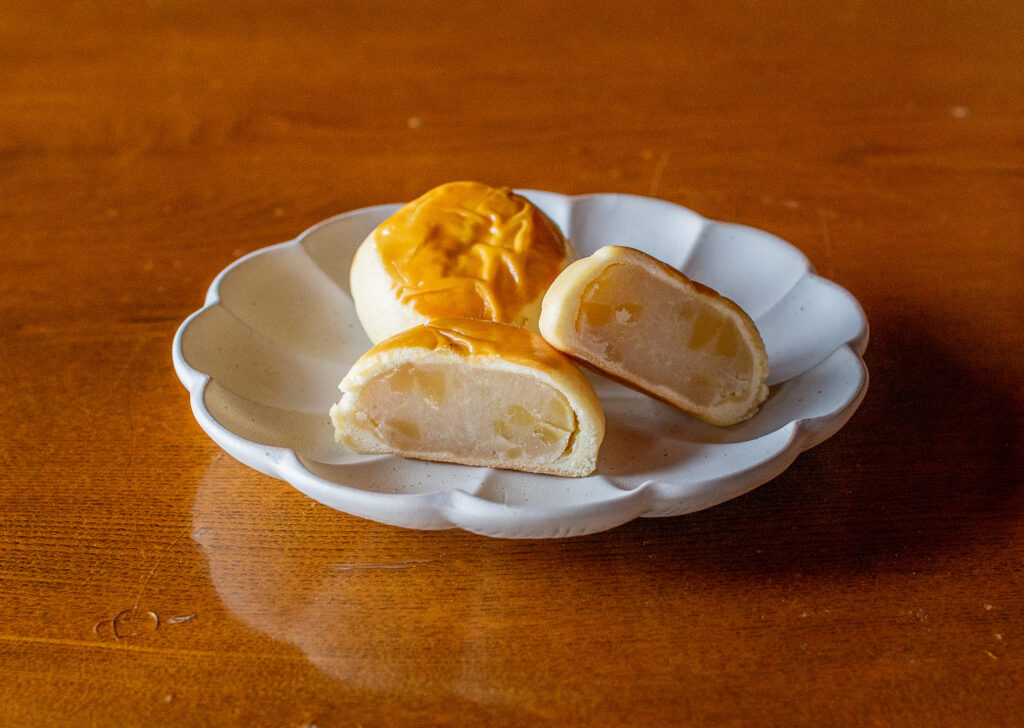 たっぷりの刻み栗と白あんを包んだ焼万頭