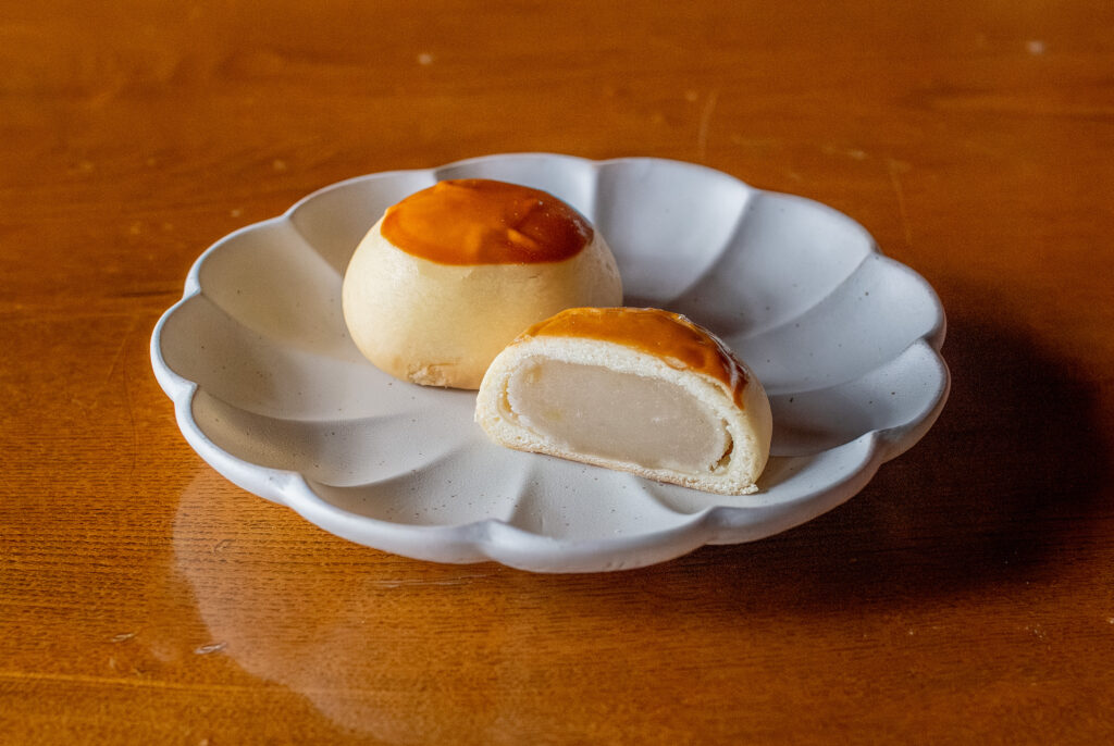 長年皆様に親しまれ続けている銘菓。風味の良い皮で包んで焼き上げた栗と白あん入りの焼き万頭です。