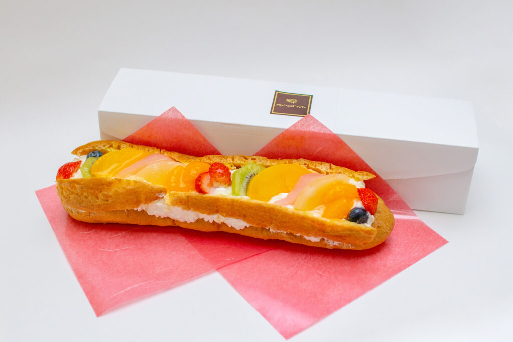 カスタード+生クリーム、苺ソースにフルーツいろいろ!